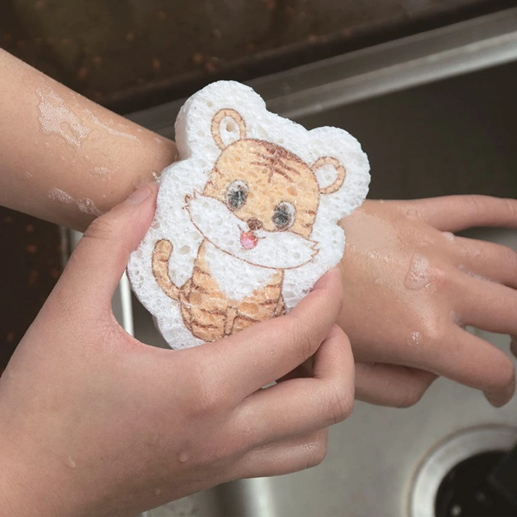 The cute cartoon design makes kitchen cleaning slightly more enjoyable. The Ruseela wood pulp dish washing sponge is lightweight, portable, and easy to store. Its high absorbency allows it to hold enough soap and water for efficient cleaning.