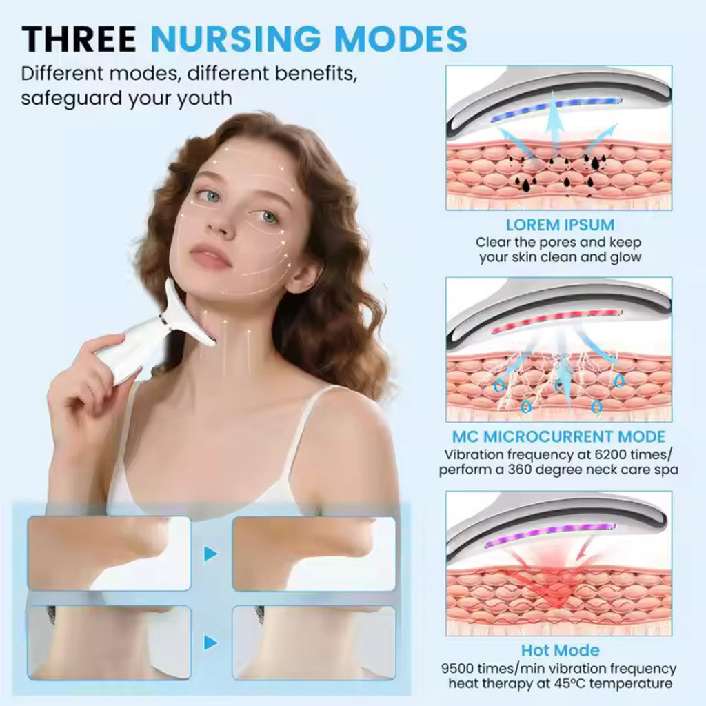The Wengonvila LED Neck Firming Massager is crafted with user comfort and versatility in mind. Its ergonomic design fits comfortably around the neck and jawline, while lightweight materials ensure long-term use without discomfort. The device integrates: